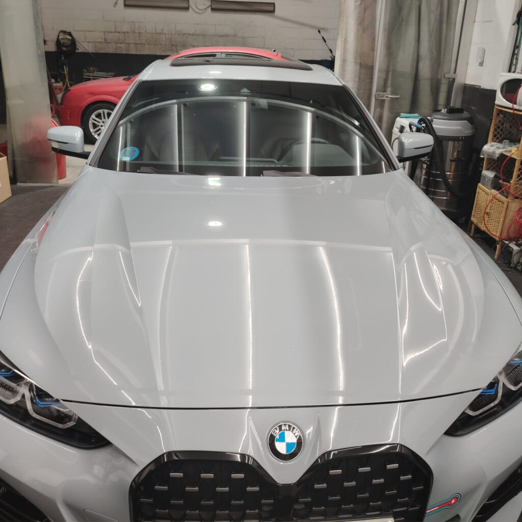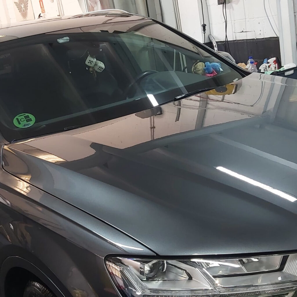 Una vez restaurada la superficie, aplicamos un tratamiento cerámico de alta calidad, que crea una capa protectora invisible y extremadamente resistente. Este recubrimiento ofrece una protección duradera frente a los rayos UV, excrementos de aves, resinas, agentes químicos y la oxidación.